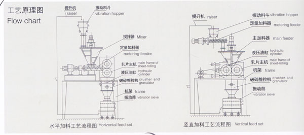 适用范围 除了挤压磨擦可引起爆炸的危险品外,本机组对大部分干粉物料都可以直接制粒。通过旋转接头对轧辊进行水冷,本机组亦可对热敏性物料进行制粒。